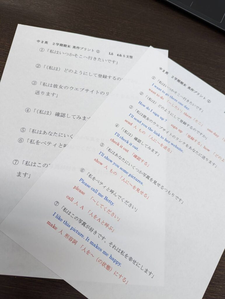 さて、次回期末試験(11月10日~)に向けて、英作プリントを作成しました。
