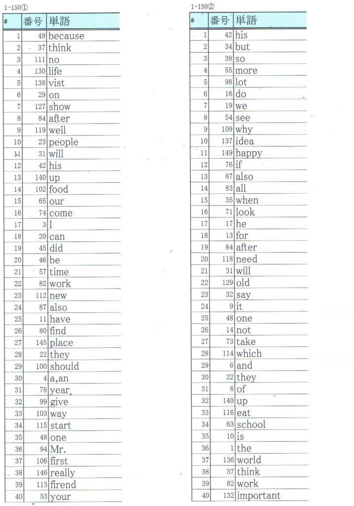 確認してみると意外と基本的な単語が抜けている生徒もいます。