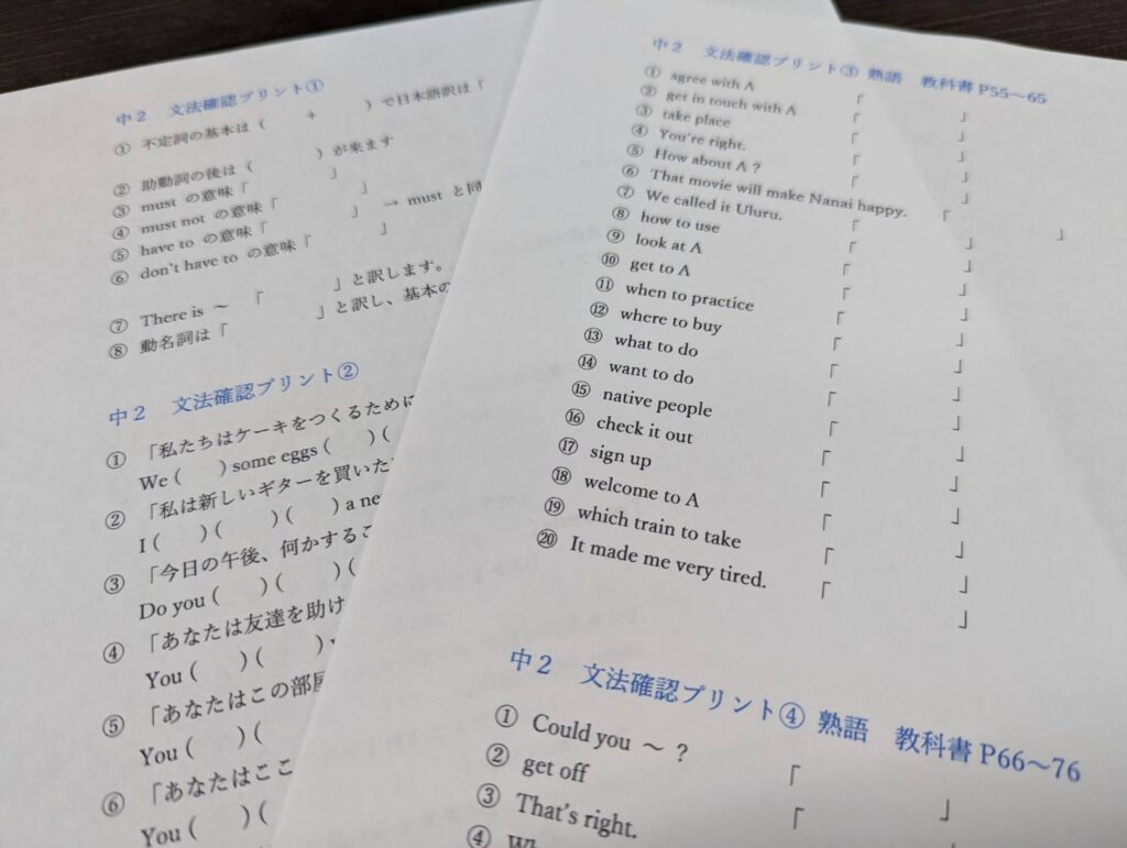 参考までに中2英語のプリントの紹介をします。