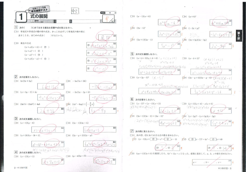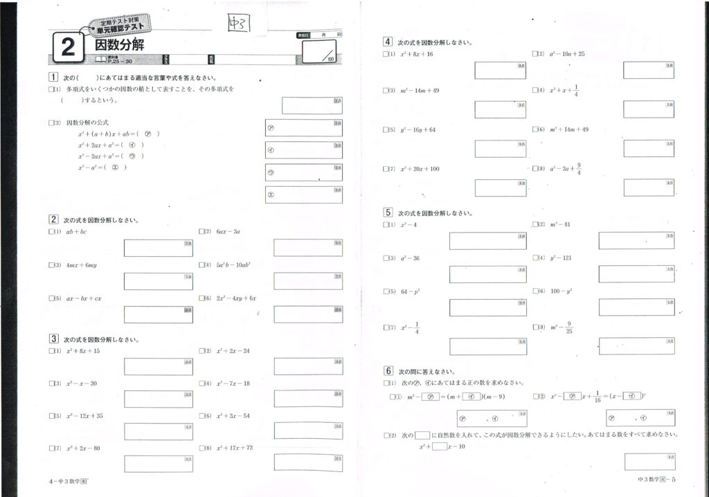 ほとんどの生徒さんが「乗法公式の展開」を終え、「因数分解」へと入っています。