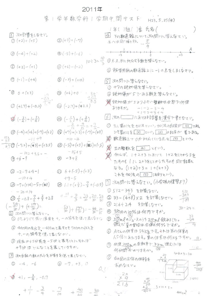 使用しているのは、5月末に実施された中間試験の問題です。 最近は「1学期は中間なしで期末のみ」という学校も増えていますが、学習内容の力試しとしては非常に良いテストです。